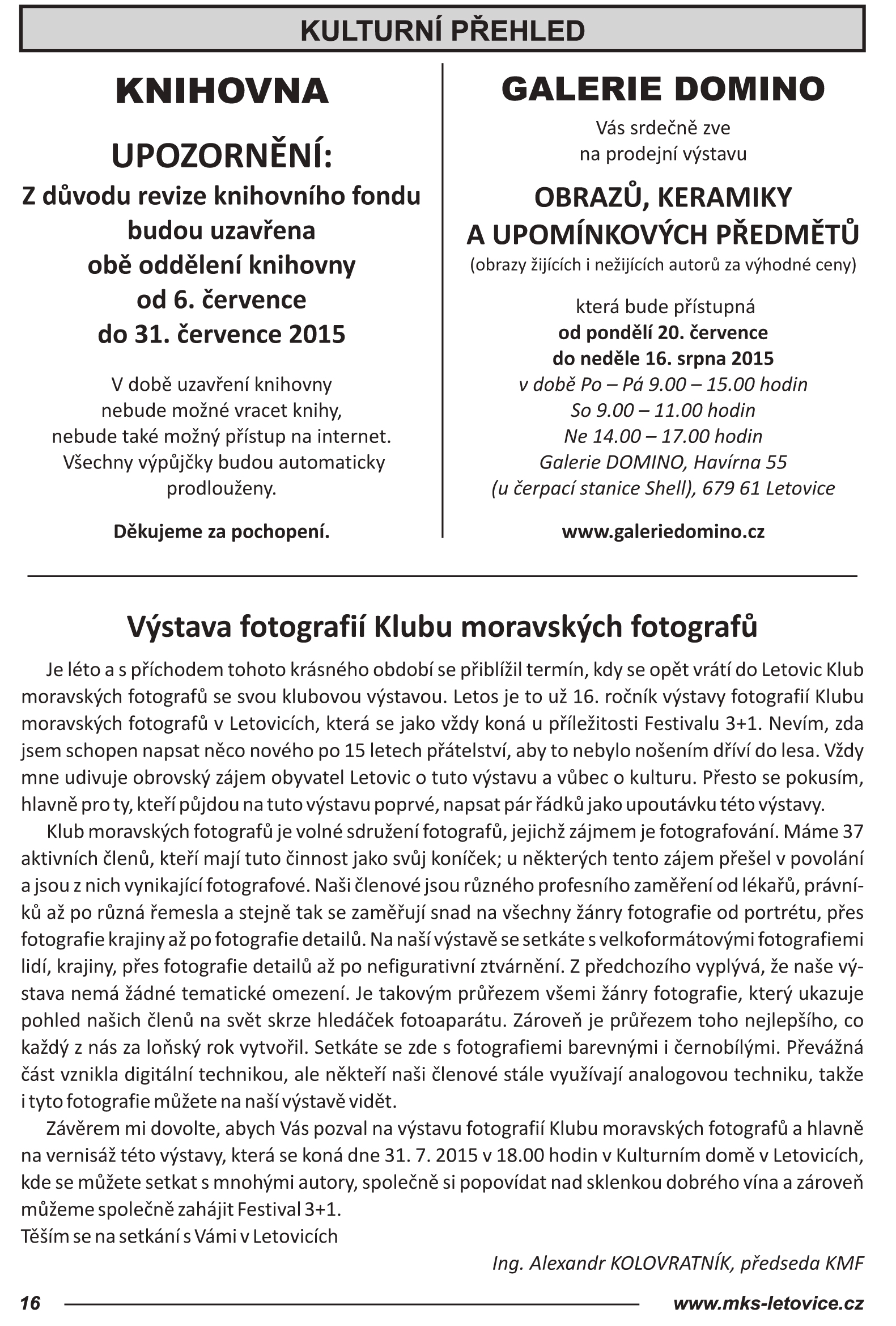 Tady je odkaz ke stažení Letovického zpravodaje, kde je článek k naší výstavě na straně 16 :