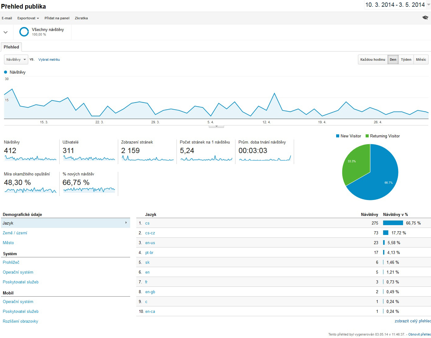 Tady je informace o návštěvnosti stránek za období 10.3.2014-3.5.2014.