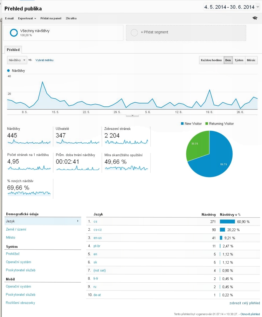 Tady je informace o návštěvnosti stránek za období 4.5.2014-30.6.2014.