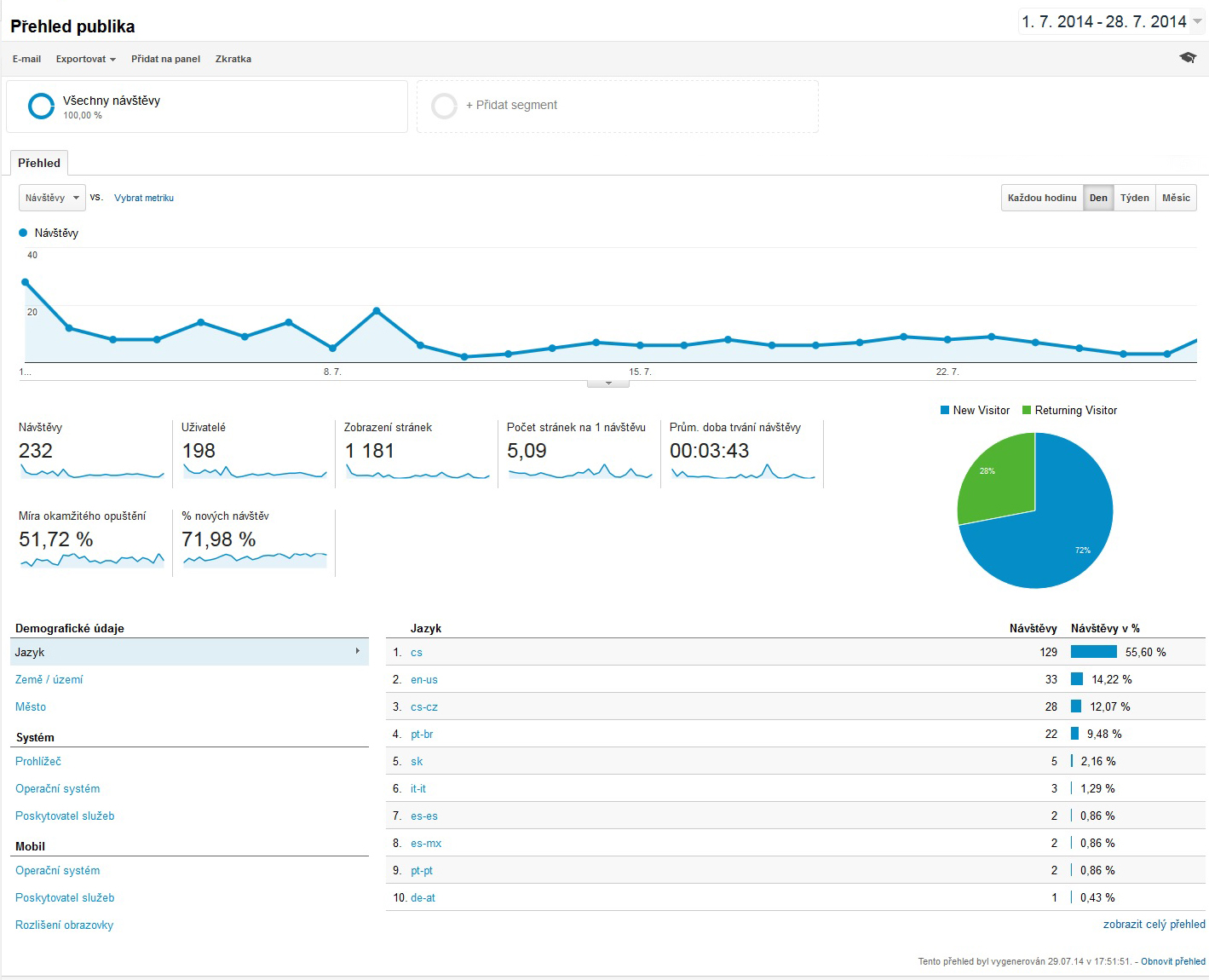 Tady je informace o návštěvnosti stránek za období 1.7.2014-28.7.2014.