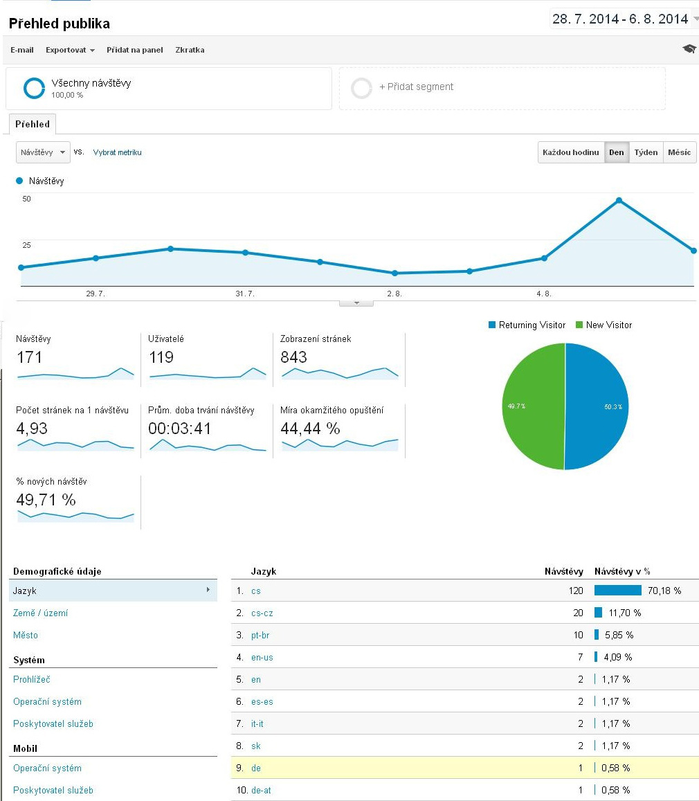 Tady je informace o návštěvnosti stránek za období 28.7.2014-6.8.2014.
