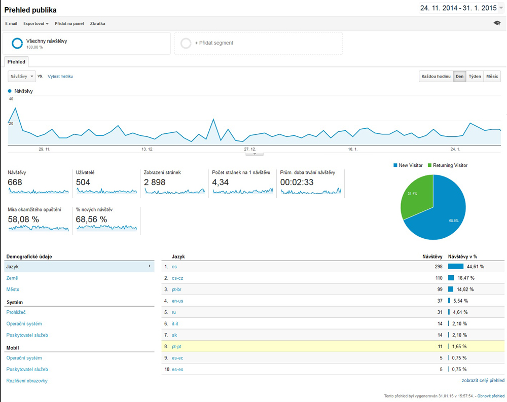 Tady je informace o návštěvnosti stránek za období 24.11.2014-31.1.2015.