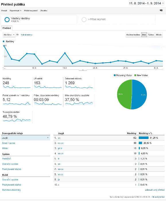 Tady je informace o návštěvnosti stránek za období 11.8.2014-1.9.2014.