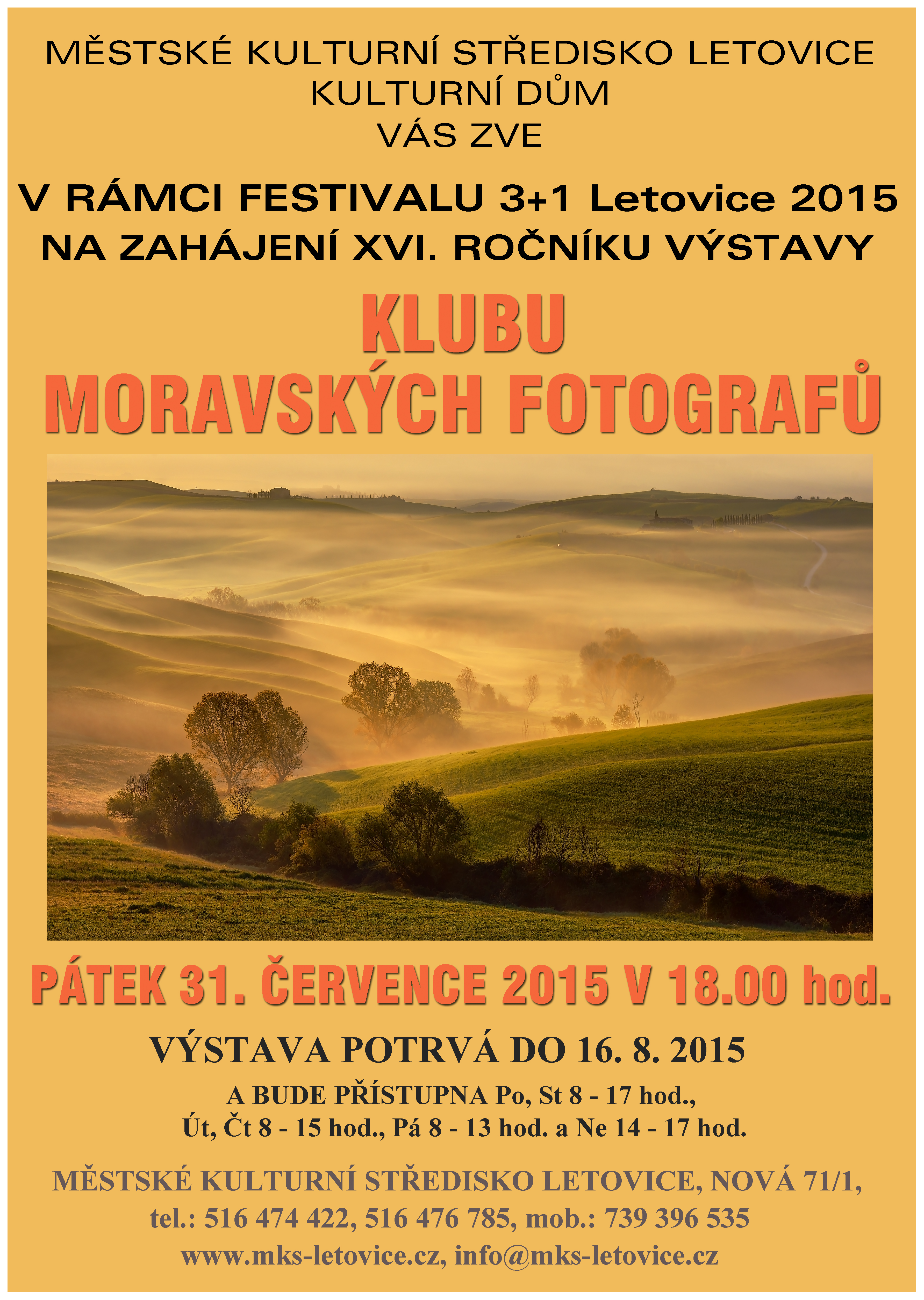 Vernisáž : 31.7.2015 v 18:00 hod. v místě konnání výstavy.